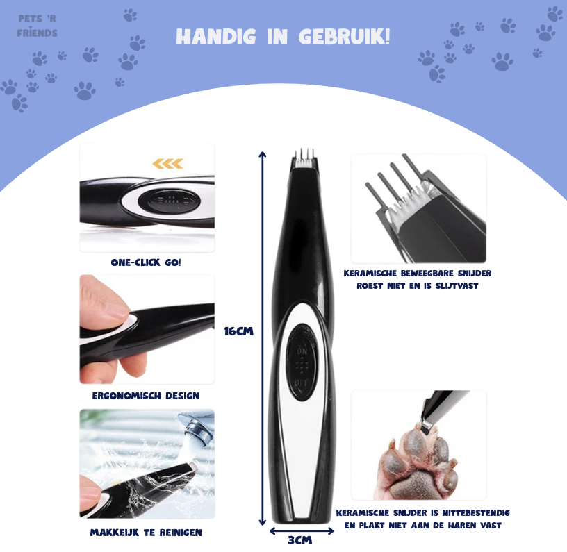 Geen dure trimsalon meer nodig! Met de GroomPro™ Trimset houd je jouw viervoeter zelf in topconditie – zonder stress, zonder rommel en zonder torenhoge rekeningen. Perfect voor baasjes die gemak en een verzorgde hond willen combineren!